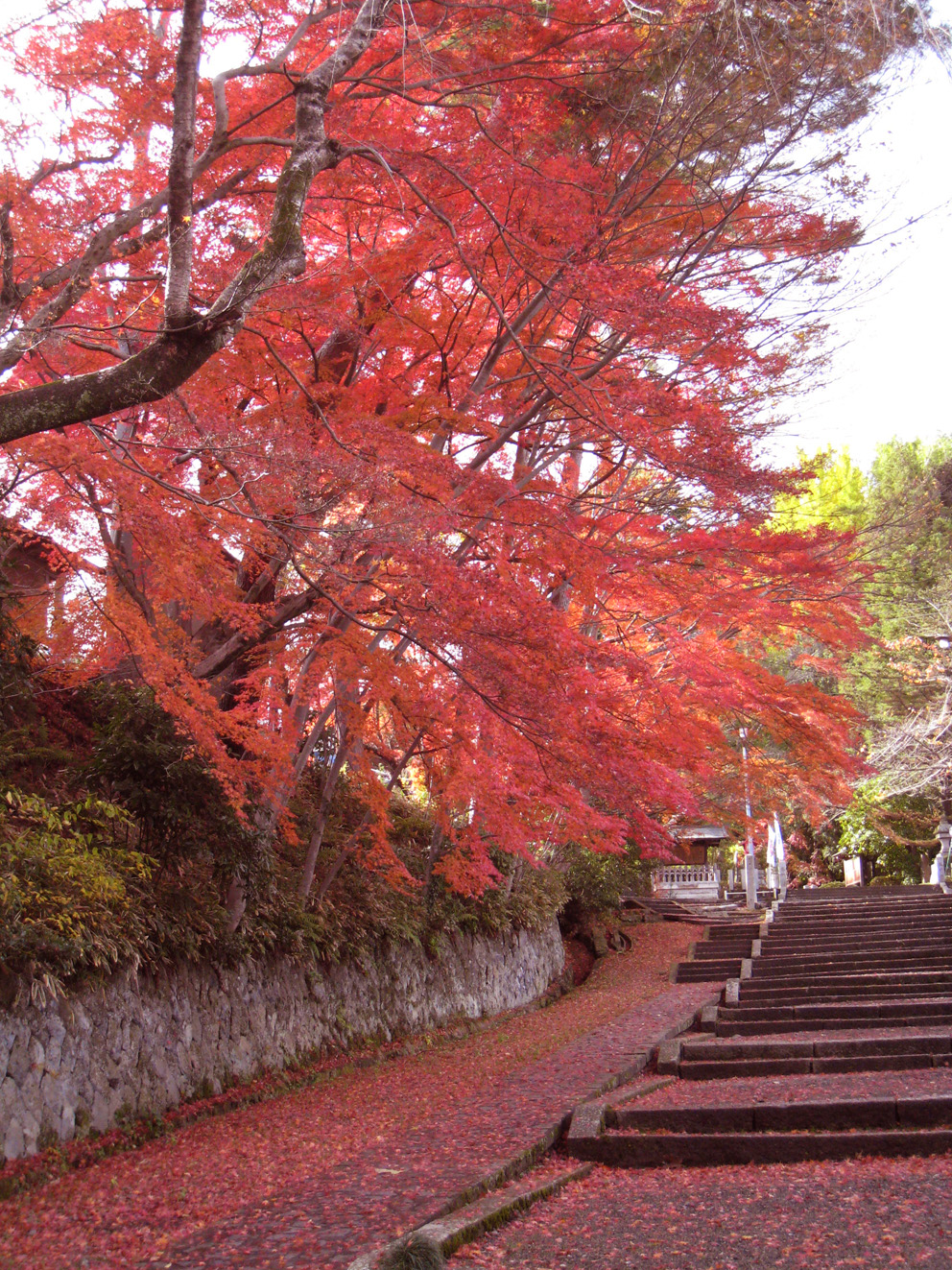 私が行ったときにはちょうど紅葉の時期で、城へ上る階段もきれいでした。