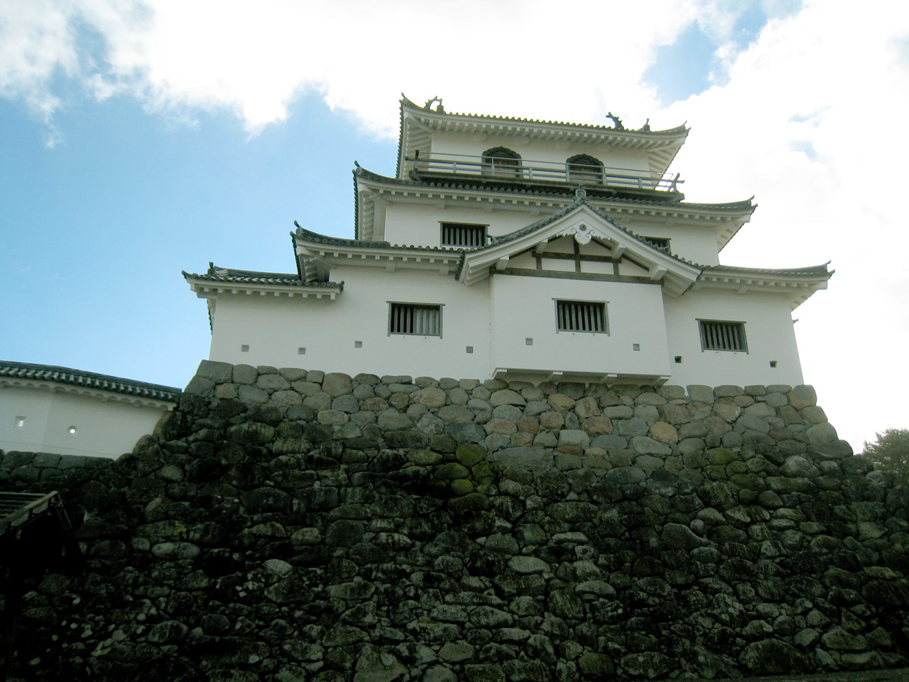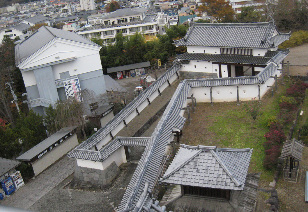 現在は天守閣と、門が復元されており、敷地内には鐘堂のレプリカが置いてあります。