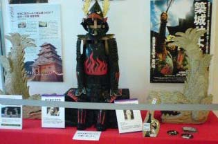 映画館ロビーに劇中に登場した段ボールのシャチホコと鎧が飾ってありました。