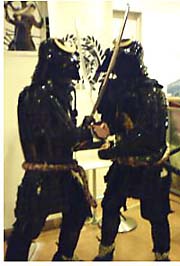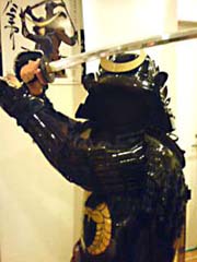 ポークは試食できるわBASARA米はあるわで楽しく過ごしつつ、二階へあがりますとそこには三体の鎧が鎮座してるではありませんか!