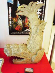 映画館ロビーに劇中に登場した段ボールのシャチホコと鎧が飾ってありました。