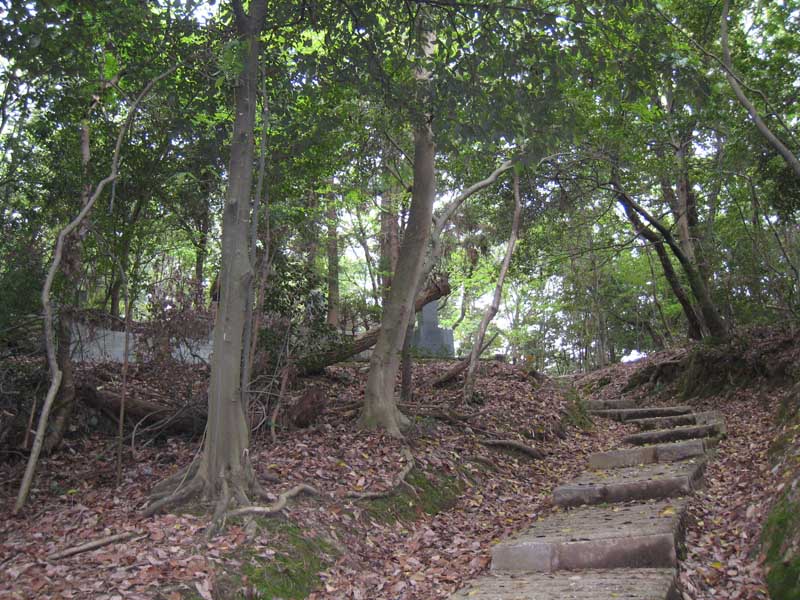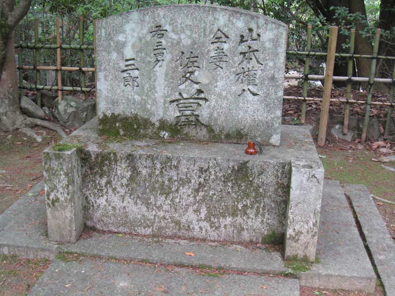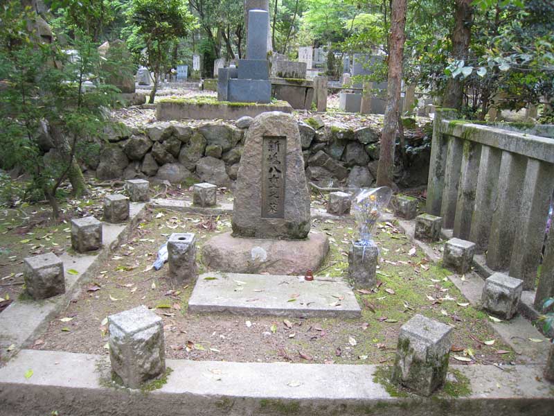 うっそうとした山の中は、同志社のみならず京都の共同墓地になっておりまして、登っていくと木々の向こうに墓、という風景が何度か現れます。チキンな私はビクビク。山の中腹くらいかな?そこまで行くと同志社の墓所が見えてきます。入口正面は襄の墓。その隣に八重の墓。